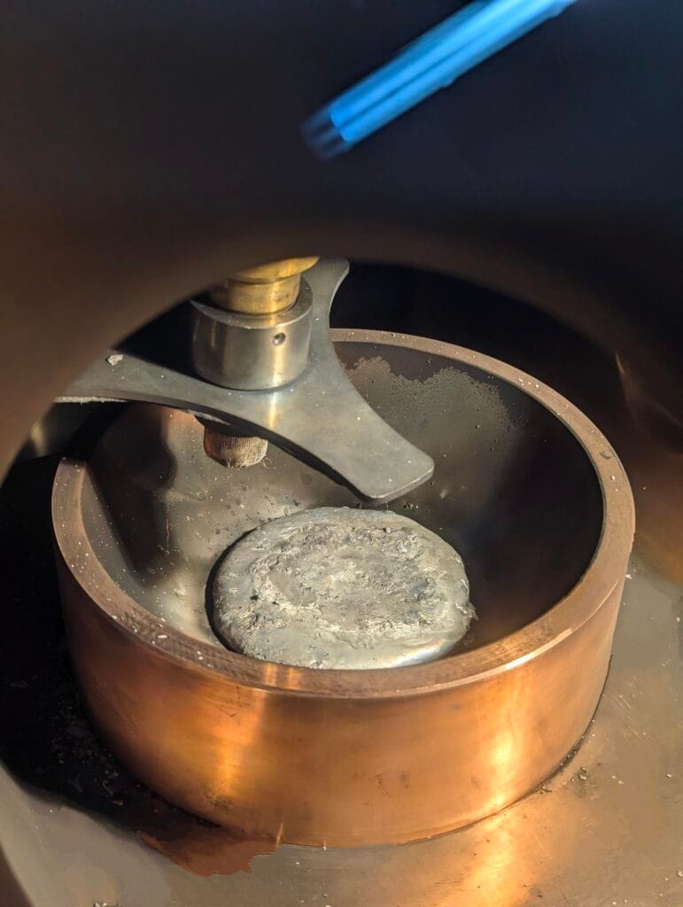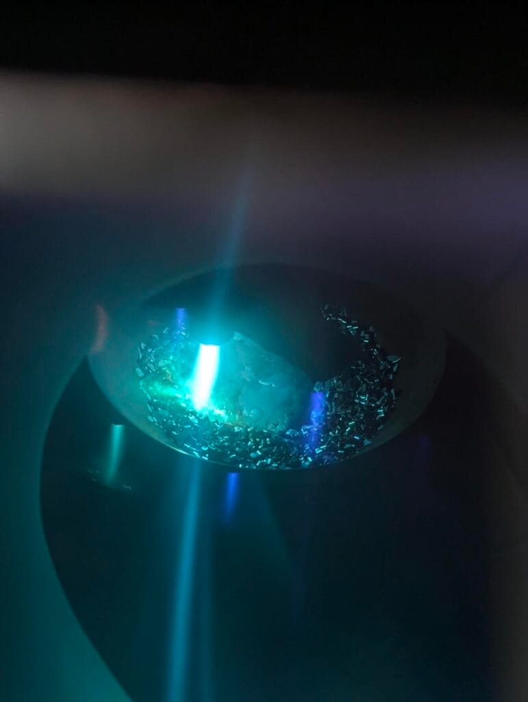AMAZEMET takes the role of leader of the 1st project, Work Package – Metal Alloy development, which involves defining the requirements for the materials and feedstock. Considering the sustainability aspect, raw elements were used to create 9 custom FeCrAlY alloys with varying content of Cr (10, 15, 20 wt.%) and Al (5, 7.5, 10 wt.%). Raw elements in the form of pellets and chips were used with a purity of at least 99.9 %. Each batch was placed in a homogenization water-cooled copper bowl and melted and homogenized using a focused plasma torch. Increased energy density and gas flow compared to TIG torches typically used in arc melting enhance the efficiency of melting and mixing of elements. The melted buttons were flipped upside down and melted for 2nd time to enhance the homogeneity of arc-melted buttons.